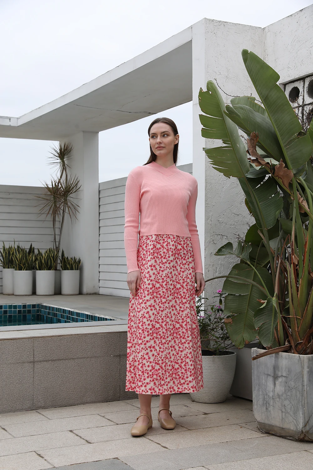 | color | Pink V-neck Sweater, Pinkfloral slipdress |