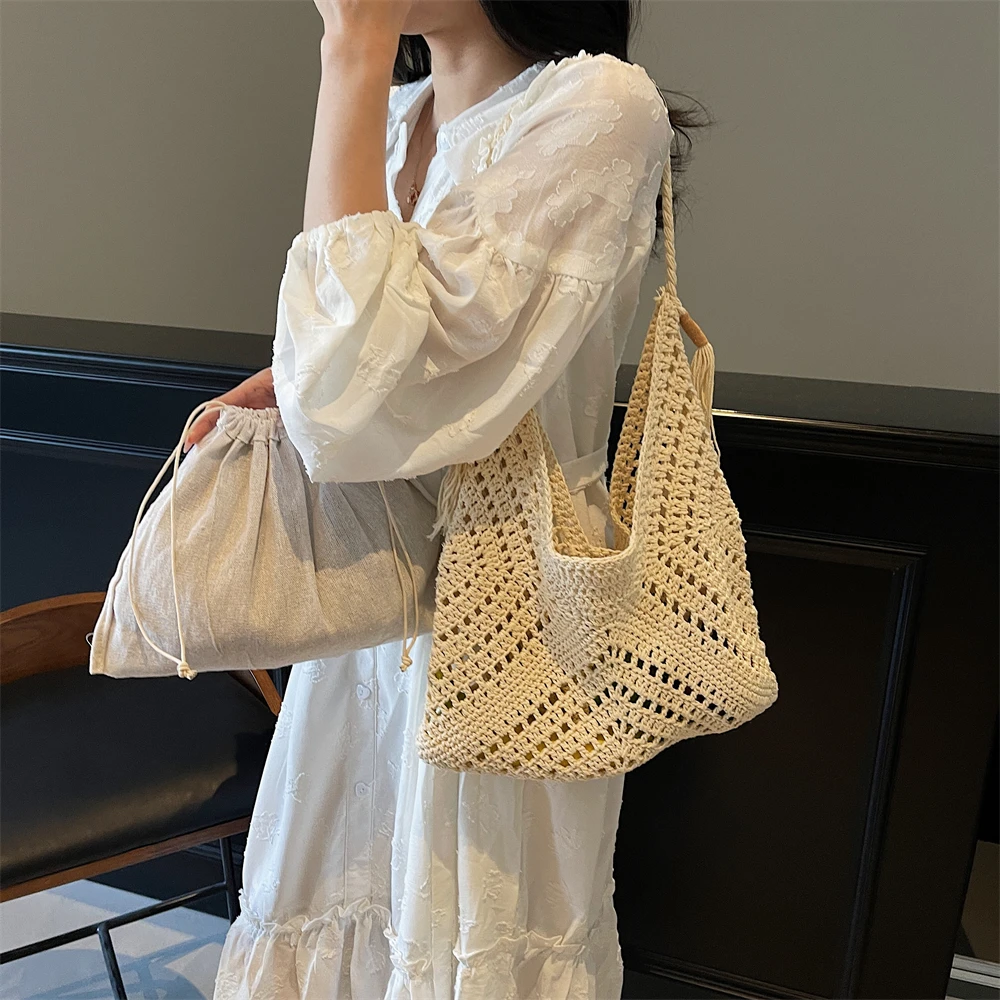Limited Time Offer2-IN-1 Crochet Shoulder Bag Set: Raffia Boho Rattan Summer Beach Tote