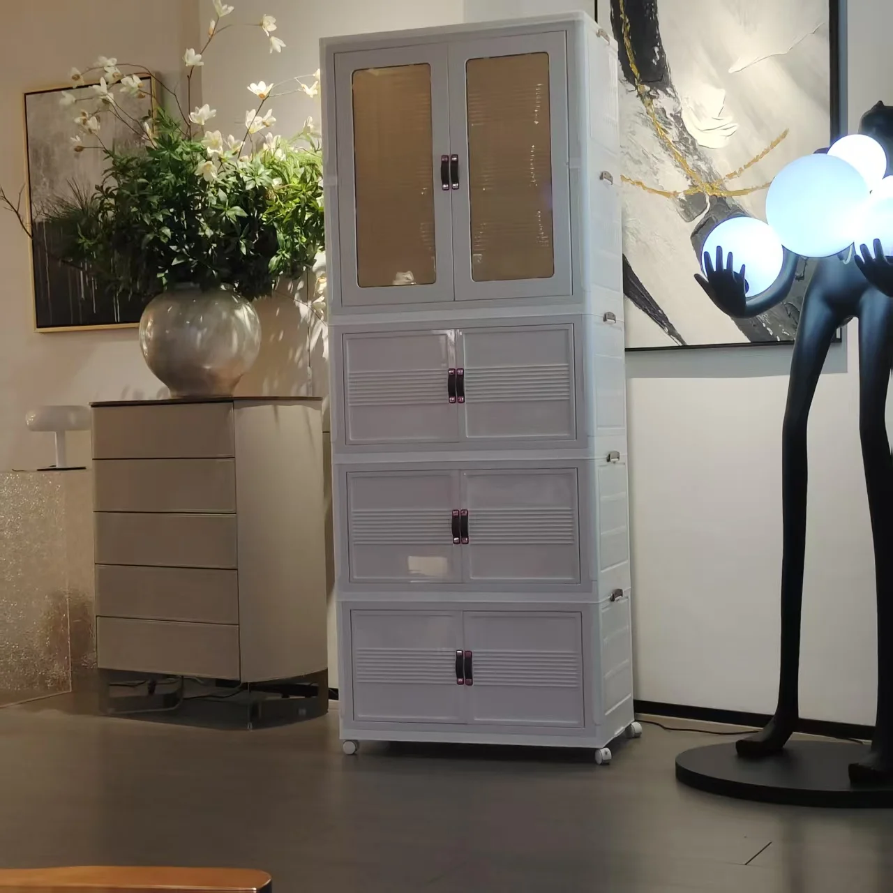 Storage Wardrobe. Magnetic Door, Universal Wheels, Stackable Design.