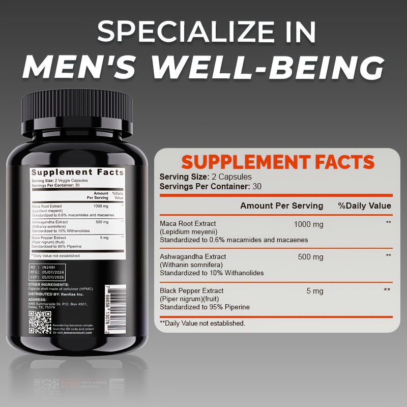 men. Powerful blend of Maca, Ashwagandha, and Black Pepper for enhanced