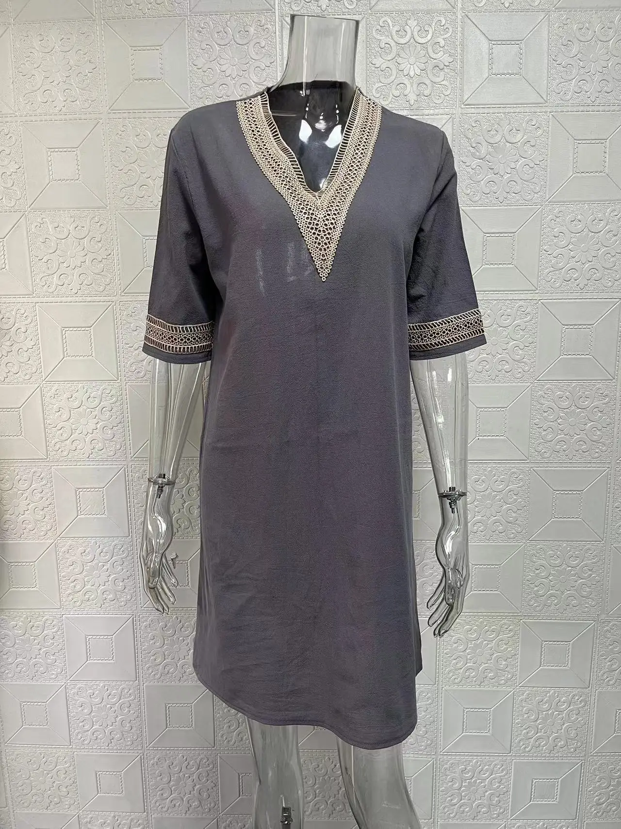 V-Neck Elegant Dress. Mid-Sleeve design for women’s fashion.