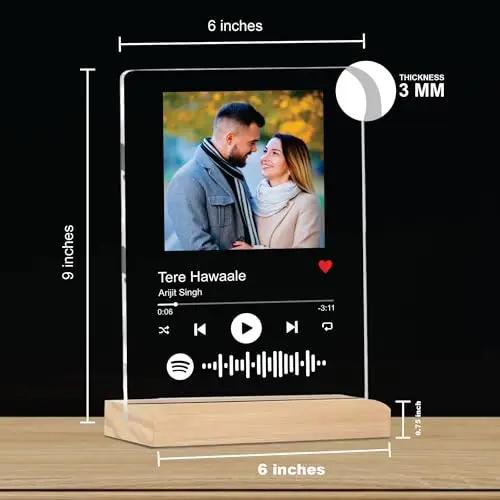 Whatsapp your Photo and Song Name : +91 7699462154 and Create a unique personalized Spotify plaque gift! Customize with a photo & song code on this 6×9″ clear frame. Perfect birthday, anniversary gift for brother, sister, or best friend.