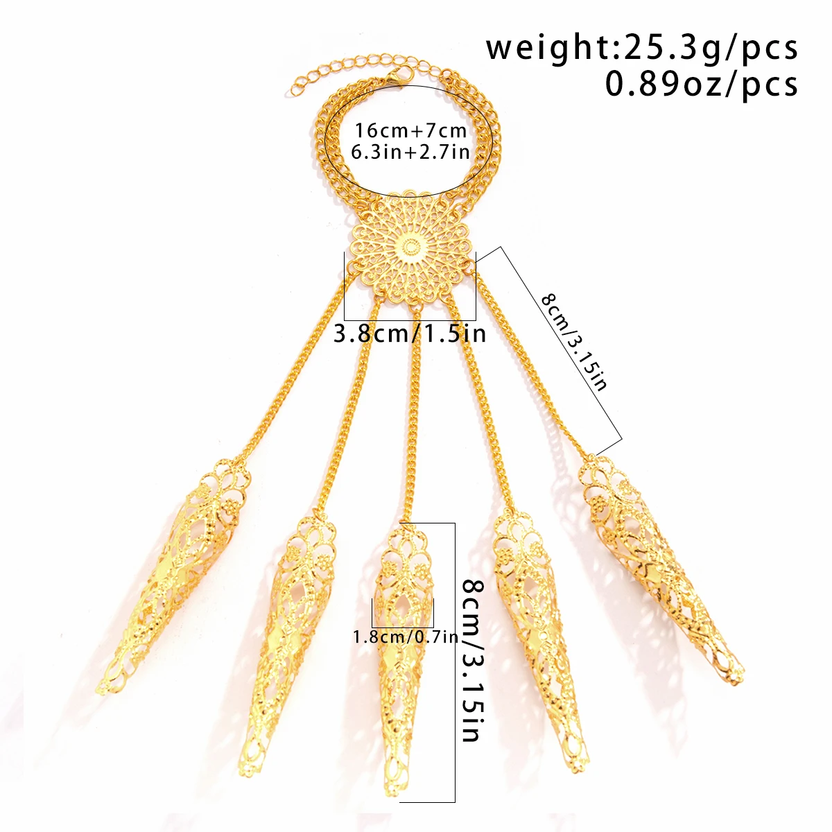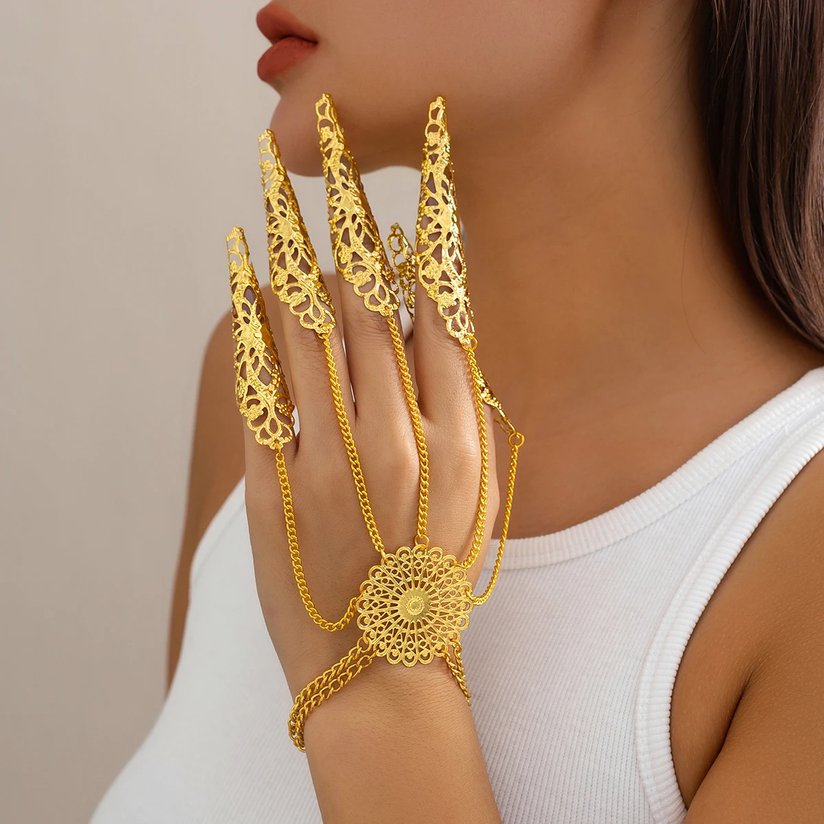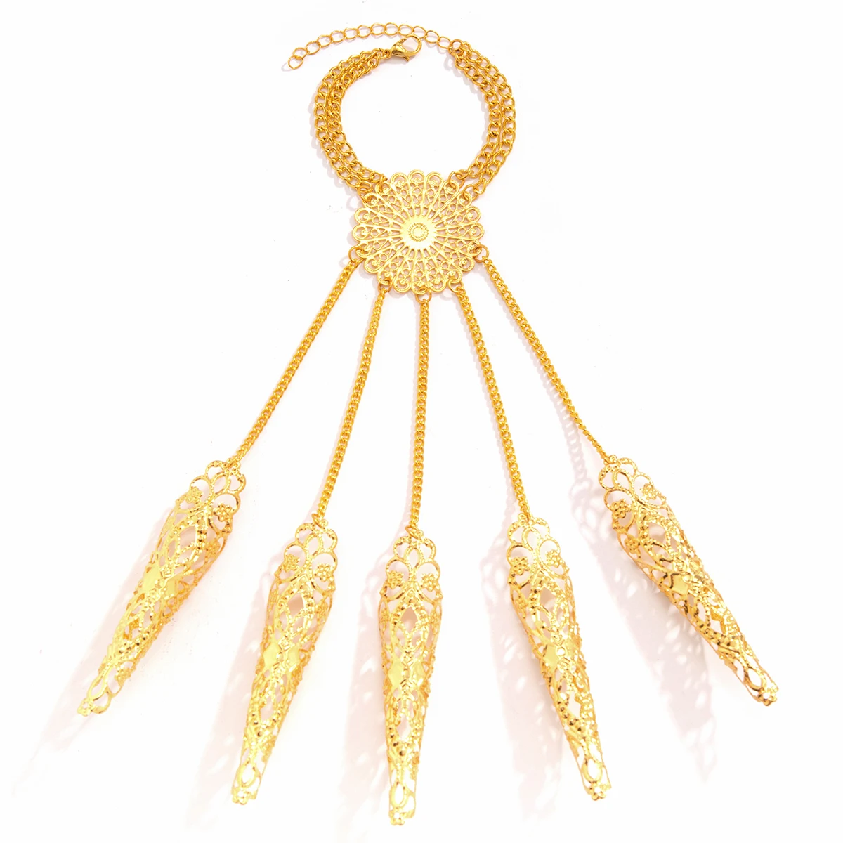 Indian Hollow Finger Wrist Chain. Bridal punk cosplay hand jewelry accessory.