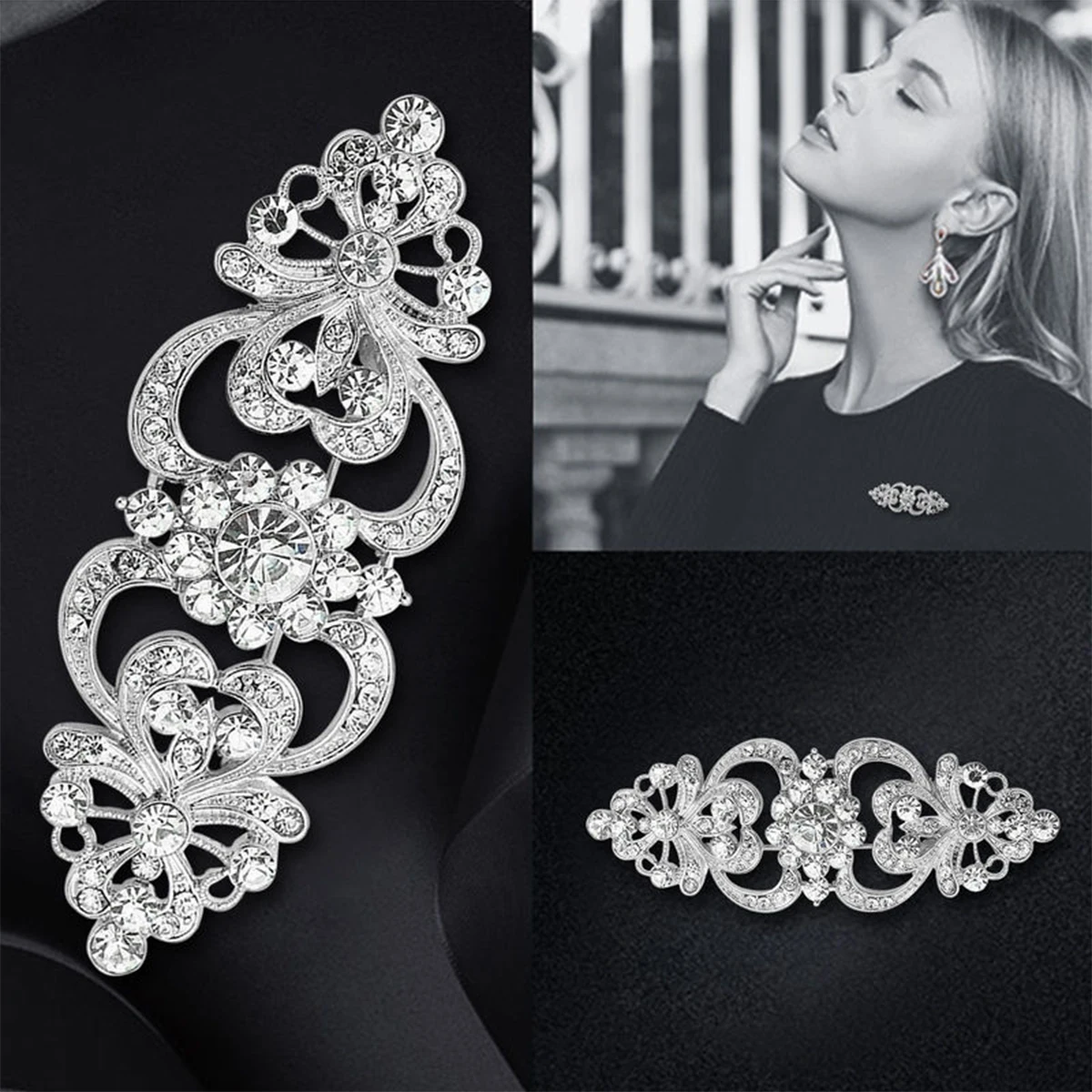 Rhinestone Flower Brooch. Elegant Pin for wedding & party gifts.